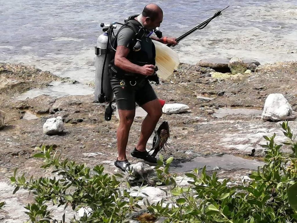 Cozumel, Q. Roo, Domingo 27 de septiembre del 2020, poderycrítica.- Un buzo que fue sorprendido pescando especies en peligro de extinción recibió un llamado de atención por parte de la Guardia Nacional.