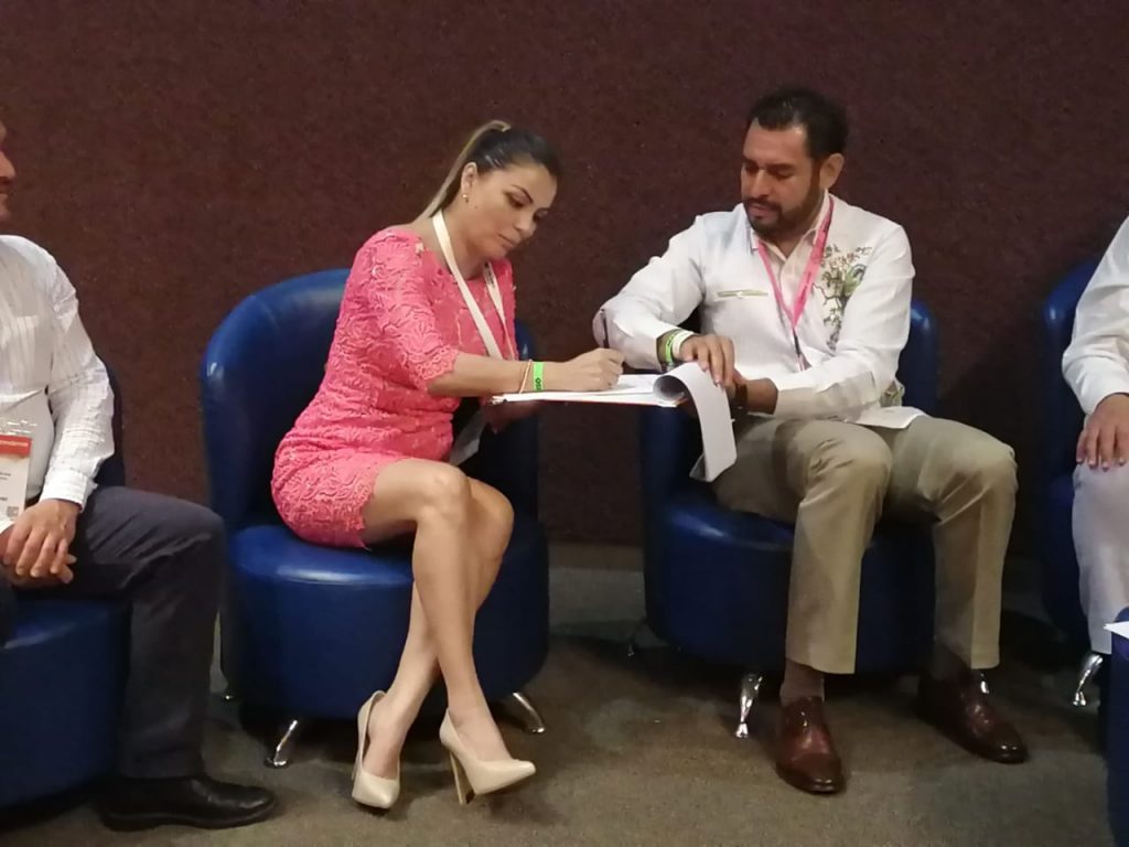 En el marco del Tianguis Turístico de México, que tiene como sede el Centro de Convenciones Siglo XXI, de Mérida, la regidora fue testigo de honor con su rúbrica del acuerdo suscrito por la Asociación Mexicana de Turismo de Aventura y Ecoturismo (AMTAVE) y la Asociación Nacional de Touroperadores de México (ANTOMEX).