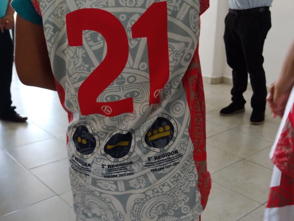 Poder y Crítica | Redacción | Los regidores del cabildo de Tulum, Anahí Mendoza Samos (2da), Carlos Coral Basulto (5to) e Iván Dzul Cabañas (9no) apoyaron con 82 uniformes a integrantes del equipo Tiburones de Tulum.