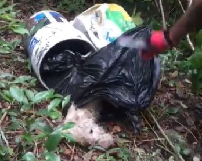 De acuerdo con el funcionario municipal, un grupo de ciclistas localizaron a un perro atado de hocico y patas, metido en una bolsa negra y en una cubeta.