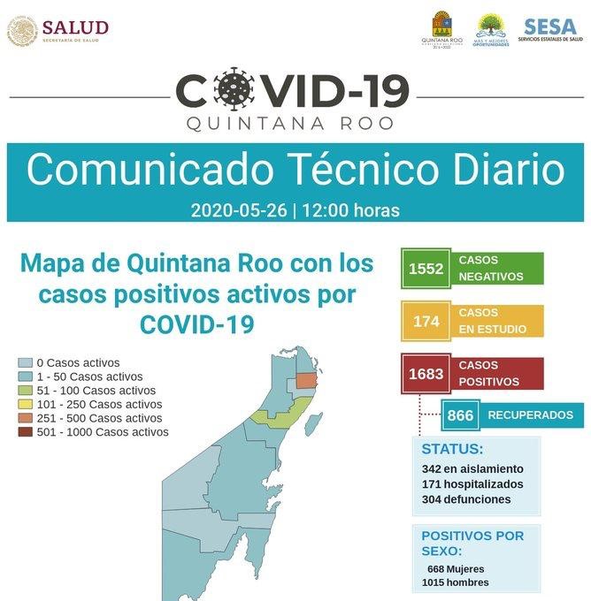 Chetumal, Q. Roo, Martes 26 de Mayo de 2020, poderycrítica.- De un día a otro, la Secretaría de Salud en el estado reportó 10 nuevas muertes por consecuencia de complicaciones por el Covid 19.