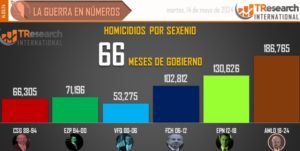 PODER Y CRÍTICA | REDACCIÓN | El reporte ‘MX: La Guerra en Números’, de T-ResearchMX, detalla que, de acuerdo con el registro de homicidios dolosos de la Secretaría de Seguridad y Protección Ciudadana, del 1 de diciembre de 2018 al 13 de mayo de 2024, tiempo que lleva la Administración del presidente Andrés Manuel López Obrador, las fiscalías estatales y federales han registrado 186 mil 765 homicidios dolosos en México.