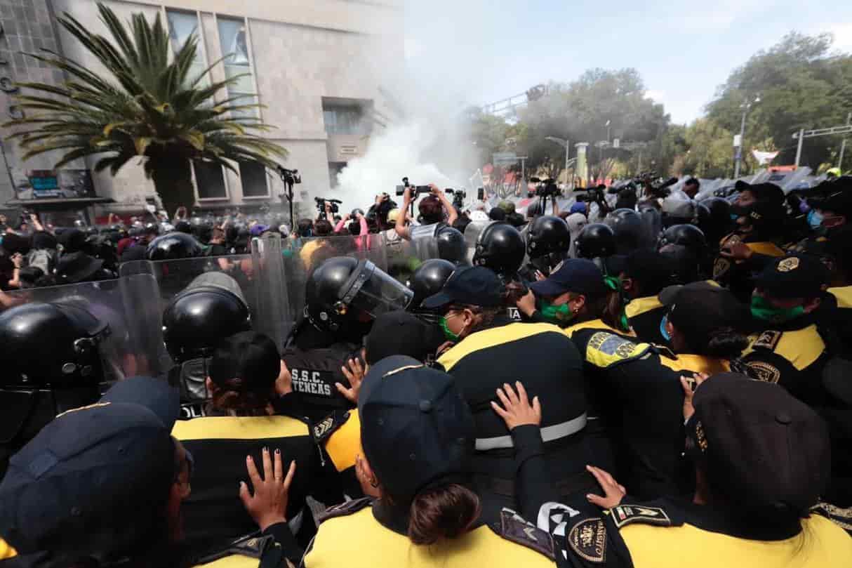 Las mujeres marchaban también a favor del aborto, pero para evitar que avancen, el Gobierno de la Ciudad de México desplegó 620 policías.