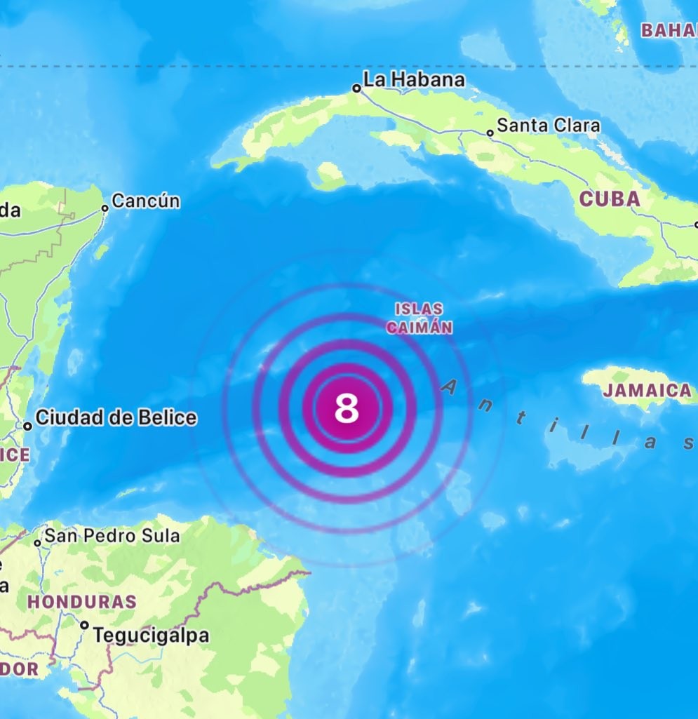 PODER Y CRÍTICA | REDACCIÓN | Un sismo de magnitud preliminar 8.0 se registró en el mar Caribe, en una zona cercana a las Islas Caimán, según reportes iniciales emitidos por la Plataforma de Alertamiento y Gestión Integral de Riesgos de México.