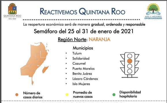 Chetumal, Q. Roo, Jueves 21 de Enero de 2021, poderycrítica.- El gobernador del estado, Carlos Joaquín González, informó esta noche que la zona norte regresa al color naranja en el semáforo epidemiológico.