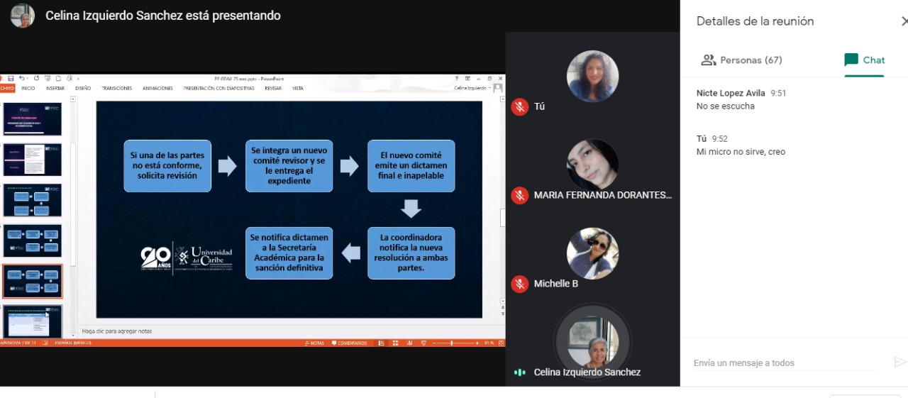 En dicha transmisión, la Coordinadora de la Comisión de Igualdad de la Unicaribe, Ing. Celina Izquierdo Sánchez, aclaró dudas y respondió preguntas sobre un caso que han generado inconformidad del estudiantado y sobre el cual, la Comisión de Derechos Humanos del Estado de Quintana Roo emitió una resolución, indicando que la Universidad del Caribe rindió un informe satisfactorio sobre la atención brindada a una estudiante, la cual se encuentra satisfecha con lo actuado e informado.