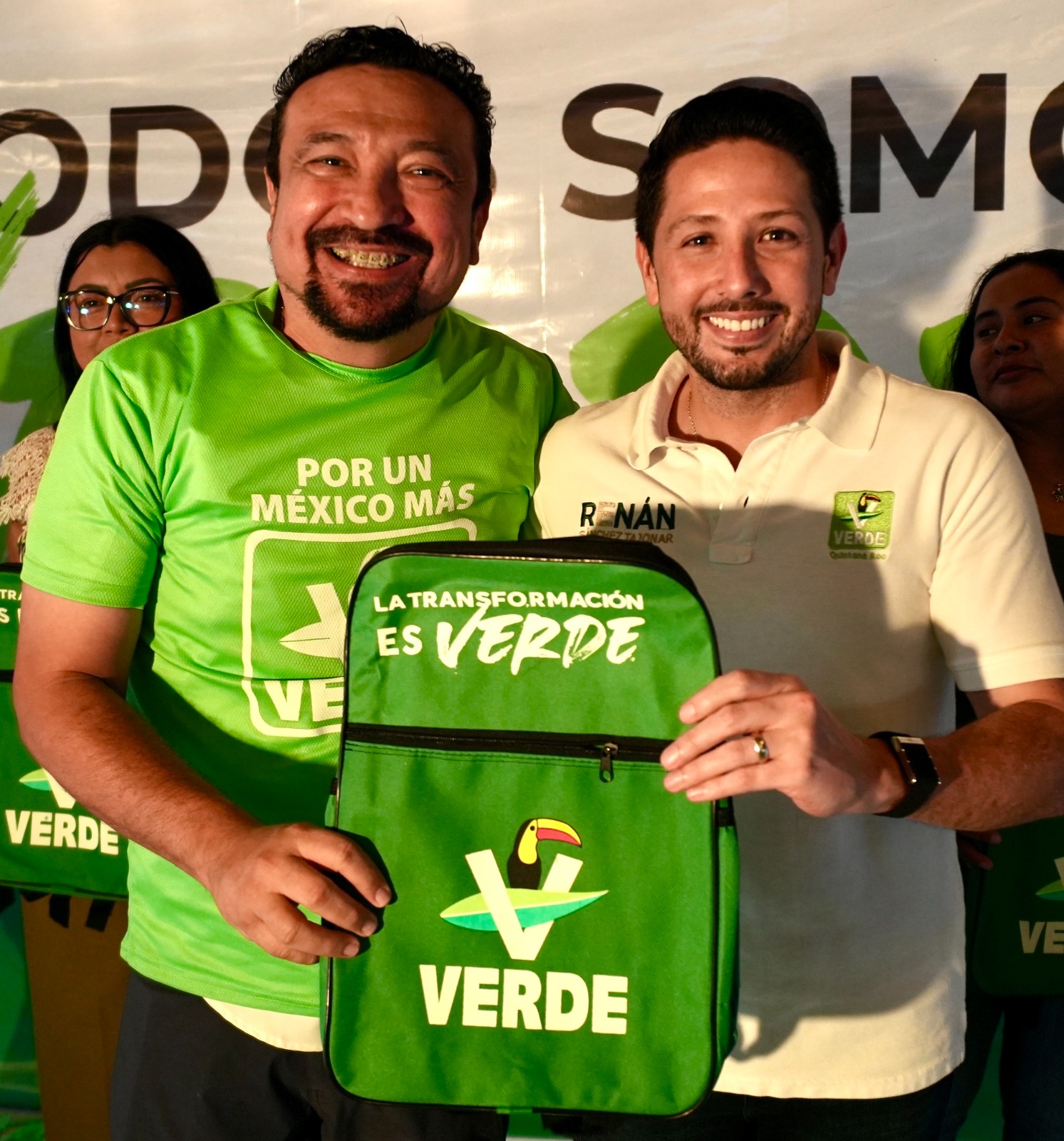 “El Verde es un partido que camina las colonias, que escucha y que cumple. La transformación debe continuar y lo vamos a hacer juntos, con organización, compromiso y resultados”, dice Sánchez Tajonar al tiempo que reparte mochilas llamadas ‘Kit Verde’, las bolsas chinas ya emblemáticas de la ‘Mafia Verde’