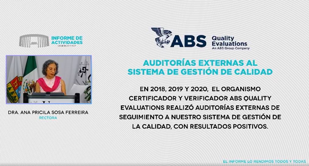 Cabe recordar de durante la presentación del informe de sus cuatro años de gestión, el pasado 15 de junio, la Dra. Pricila Sosa señaló que en 2018, 2019 y 2020, ABS Quality Evaluations realizó auditorías externas de seguimiento al Sistema de Gestión de la Calidad, con resultados positivos.