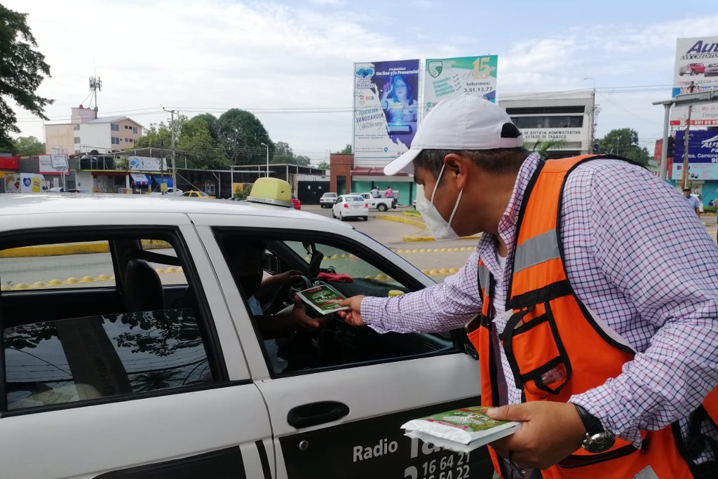 Tabasco, 26 agosto; poderycritica.-Cómo parte de la campaña ‘Me cuido, te cuido’, personal del área de atención ciudadana del Ayuntamiento de Centro obsequió cubrebocas a automovilistas en el crucero de la Avenida Gregorio Méndez con 27 de febrero, a la altura de la fuente del ‘Chorro’.