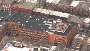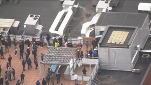 Varios empleados lograron escapar hasta la azotea del edificio, donde han bloqueado la puerta, según el video capturado desde un helicóptero de noticias.