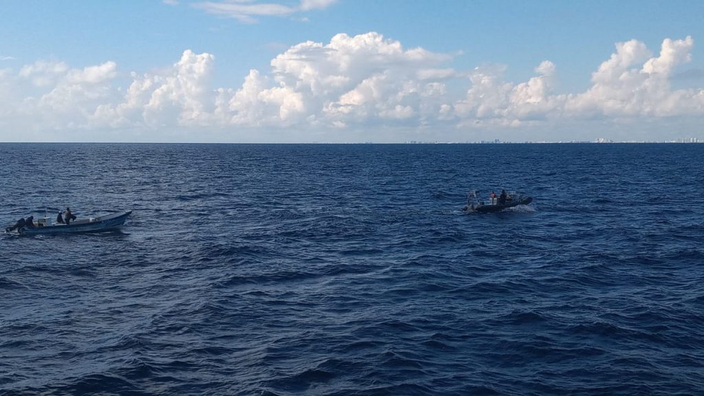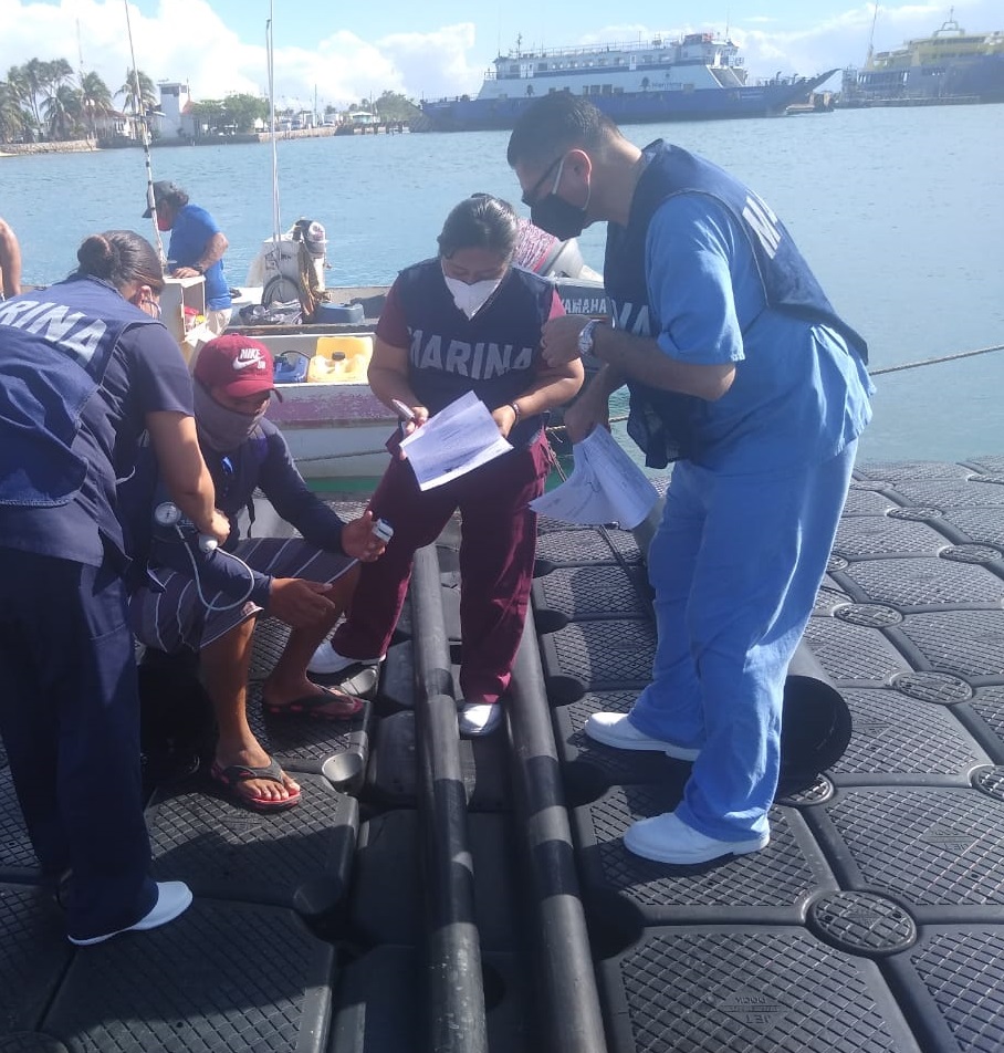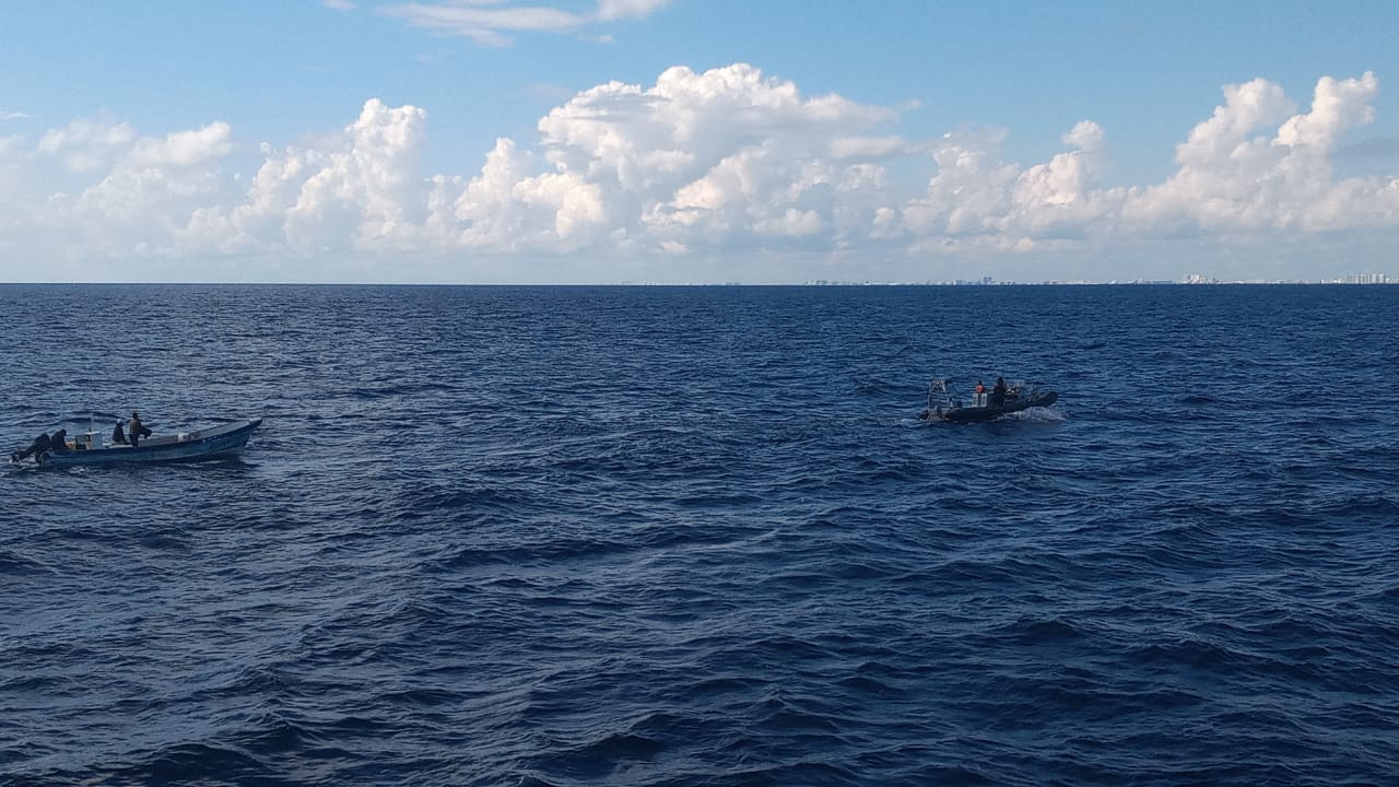 Por lo anterior, zarpó de forma inmediata una embarcación tipo RHIB de citada Patrulla Costera para proporcionar el apoyo y trasladar, tanto a los tripulantes como a la embarcación hacia el muelle de esta Quinta Región Naval, en donde eran esperados por personal de la Capitanía de Puerto de Isla Mujeres para los trámites correspondientes.