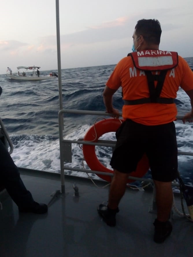 Por tal motivo y con el objetivo de salvaguardar la vida humana en la mar, se ordenó el zarpe inmediato de una Patrulla Interceptora del Sector Naval de Cozumel con personal de citada Estación Naval a bordo, que logró localizar a citada embarcación, proporcionando el apoyo de traslado, tanto de las personas como de la embarcación, hacia la Marina Banco Playa en Cozumel, Q. Roo; donde personal de Sanidad Naval efectuó valoración médica correspondiente, encontrándolos en buen estado de salud.