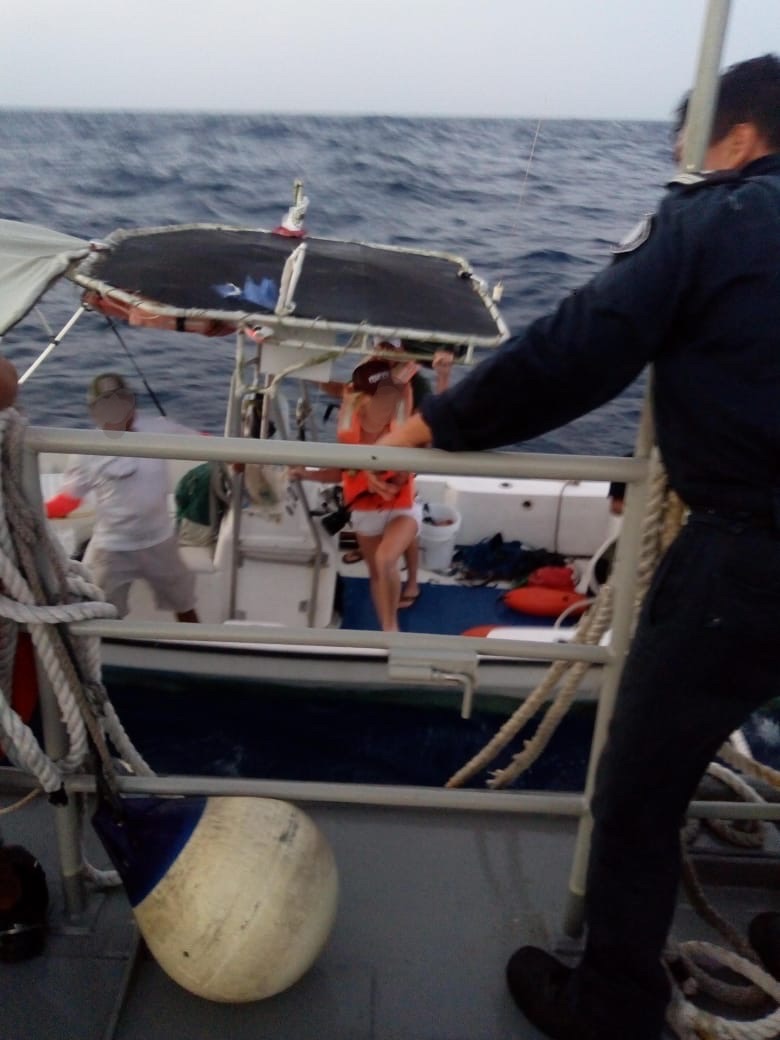 Por tal motivo y con el objetivo de salvaguardar la vida humana en la mar, se ordenó el zarpe inmediato de una Patrulla Interceptora del Sector Naval de Cozumel con personal de citada Estación Naval a bordo, que logró localizar a citada embarcación, proporcionando el apoyo de traslado, tanto de las personas como de la embarcación, hacia la Marina Banco Playa en Cozumel, Q. Roo; donde personal de Sanidad Naval efectuó valoración médica correspondiente, encontrándolos en buen estado de salud.