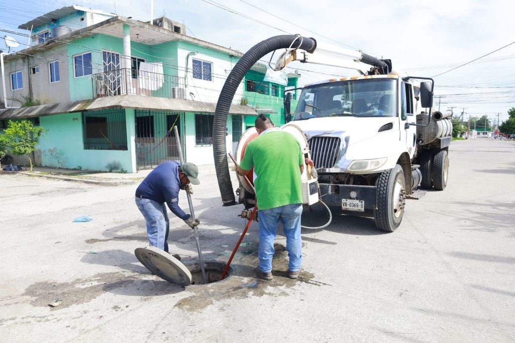 En acción paralela, personal del Sistema de Agua y Saneamiento intervino con el desazolve de drenaje y alcantarillas con equipo Vactor.