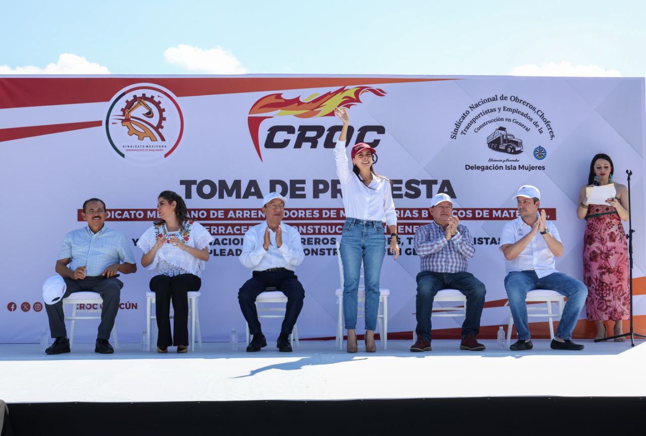PODER Y CRÍTICA | REDACCIÓN | Autoridades del Ayuntamiento de Benito Juárez y del gobierno de Quintana Roo atestiguaron las tomas de protesta de los liderazgos del Sindicato Mexicano de Arrendadores de Maquinaria, Bancos de Material, Terraceros y Construcción en General; así como del Sindicato Nacional de Obreros, Choferes, Transportistas y Empleados de la Construcción en General, delegación Isla Mujeres, pertenecientes a la Confederación Revolucionaria de Obreros y Campesinos (CROC).