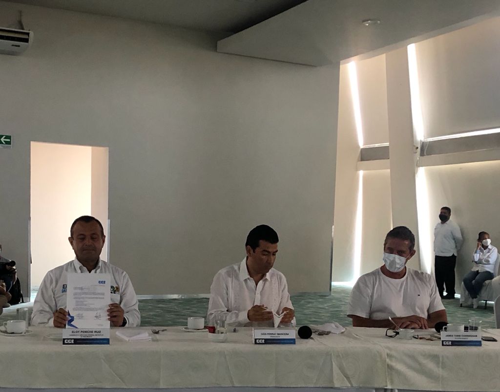 El candidato ciudadano de la alianza Va por México, Eloy Peniche, se reunió primero con integrantes del CCE a invitación de su presidente Iván Ferrat Mancera, ante quienes expuso sus principales propuestas, entre las que destacan elevar el turismo a prioridad nacional y crear la Secretaría Nacional de la Mujer, las cuales fueron bien recibidas por los organismos que conforman el Consejo.