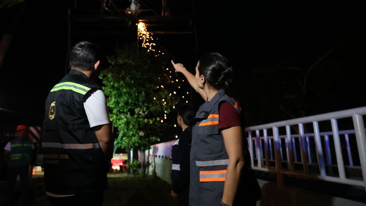 “Hemos solicitado el apoyo de SMIE que son los expertos en estructuras para que hagan un dictamen en conjunto con Protección Civil y conocer cuales representan un riesgo para la seguridad de las y los cancunenses”, afirmó la Alcaldesa al constatar las acciones realizadas para salvaguardar la seguridad la ciudadanía.