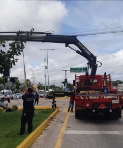 Tras la maniobra se reabrió la circulación vial para permitir el tránsito vehicular en este punto de la ciudad de Playa del Carmen.