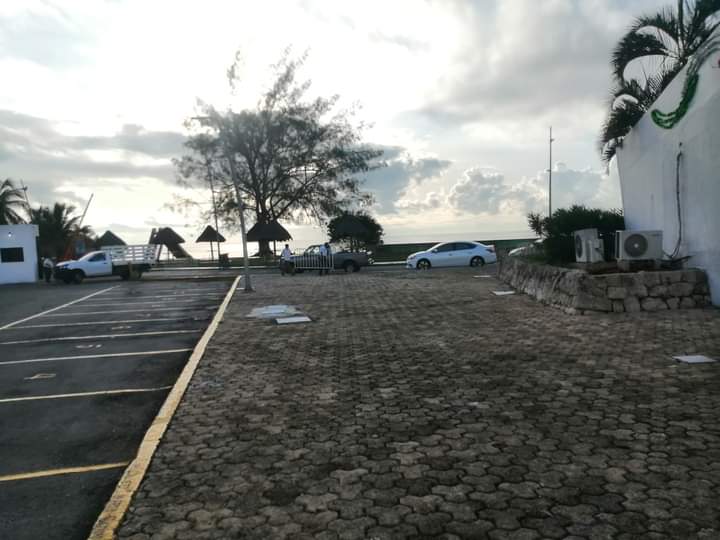 Las vallas fueron instaladas en toda la zona del estacionamiento para evitar el acceso por la puerta izquierda. Al igual que en la entrada derecha que da al bulevar Bahía.