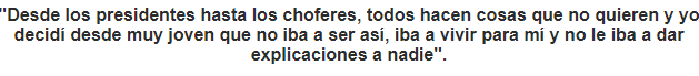 Comentó que estás palabras significa la libertad con la que ha llevado su vida, pues desde muy joven se prometió no dar explicaciones a nadie sobre sus actos.
