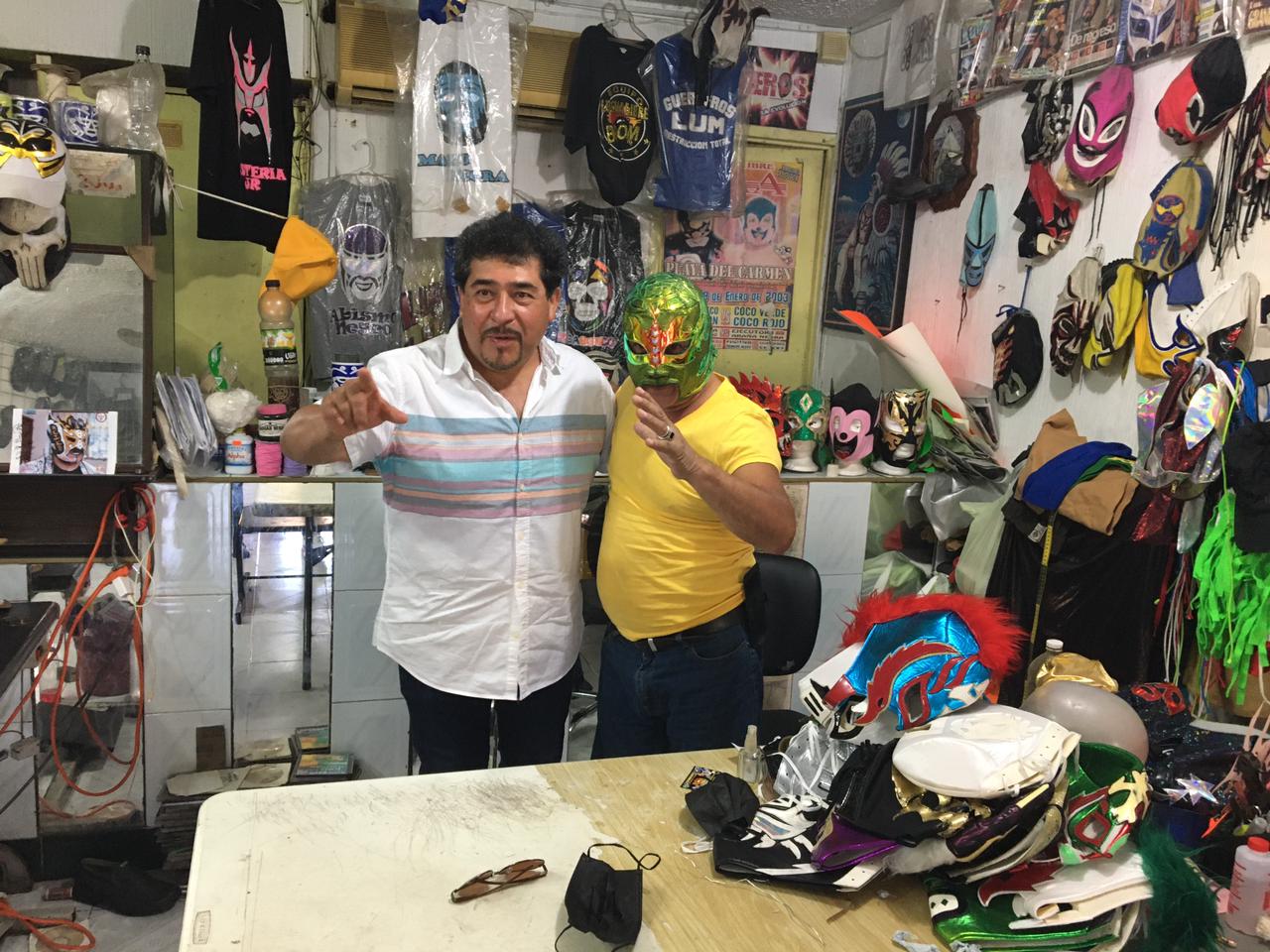 “Estoy retirado de la Lucha Libre pero la llevo en mi corazón, llevo muchos años en esto y creo que me ha dado mucho de lo que tengo”, dijo el ex luchador, en una convivencia con aficionados en el local zapatería “La Chikita” del Crucero de Cancún con su amigo Leyenda Azteca.
