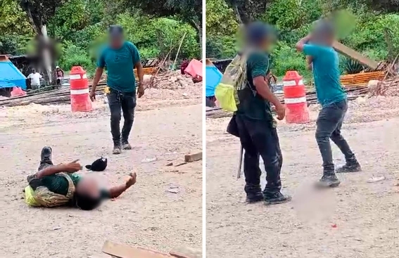 PODER Y CRÍTICA | REDACCIÓN | La construcción del puente sobre el tramo carretero Chetumal-Subteniente López se convirtió en escenario de un violento incidente este lunes, cuando un trabajador del Tren Maya noqueó a su compañero tras golpearlo en la cabeza utilizando una madera.