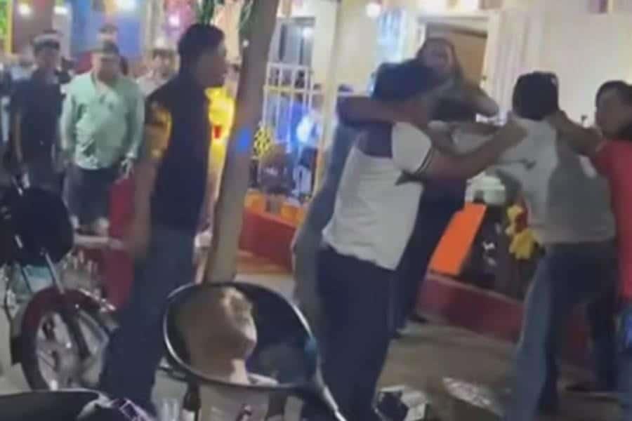En redes sociales comenzó a circular un video de 39 segundos en el que se observa a un grupo de al menos diez personas, en su mayoría hombres, intercambiando golpes y arrojándose líquidos, aparentemente cerveza, en plena vía pública.