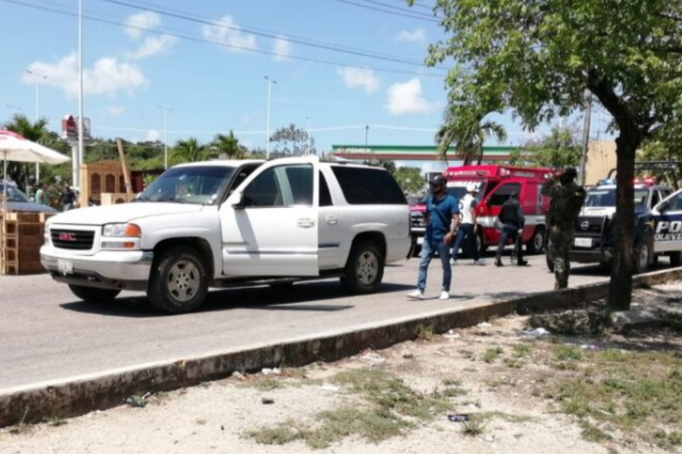 PODER Y CRÍTICA | REDACCIÓN | Dos sujetos en un vehículo con reporte de robo se enfrentaron a disparos con agentes de la Policía Quintana Roo, esta tarde a un costado del centro comercial “Multiplaza” de esta ciudad. Uno resultó herido de bala, mientras que el otro fue detenido.