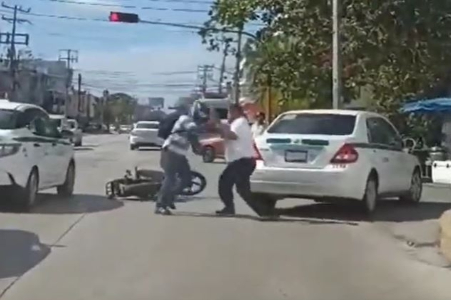 PODER Y CRÍTICA | REDACCIÓN | Un taxista del Sindicato “Andrés Quintana Roo” fue captado en un video en plena pelea a golpes con un motociclista, en las inmediaciones del primer cuadro de esta ciudad.