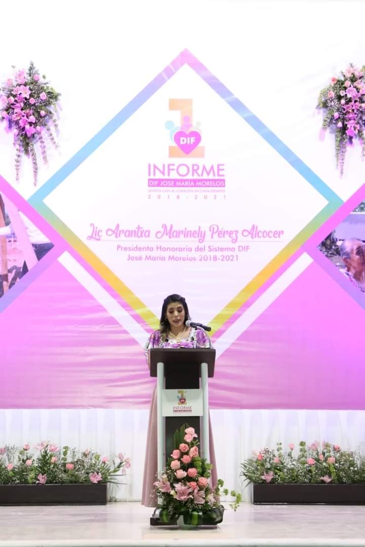 José María Morelos, Q. Roo, Lunes 22 de Marzo de 2021, poderycrítica.- En pleno cumplimiento del compromiso social y moral para con la sociedad, la presidenta del Sistema para el Desarrollo Integral de la Familia en José María Morelos, Arantxa Marinely Pérez Alcocer, a dos años de estar al frente de la loable institución, informó los logros y avances en materia de trabajo social en el municipio.