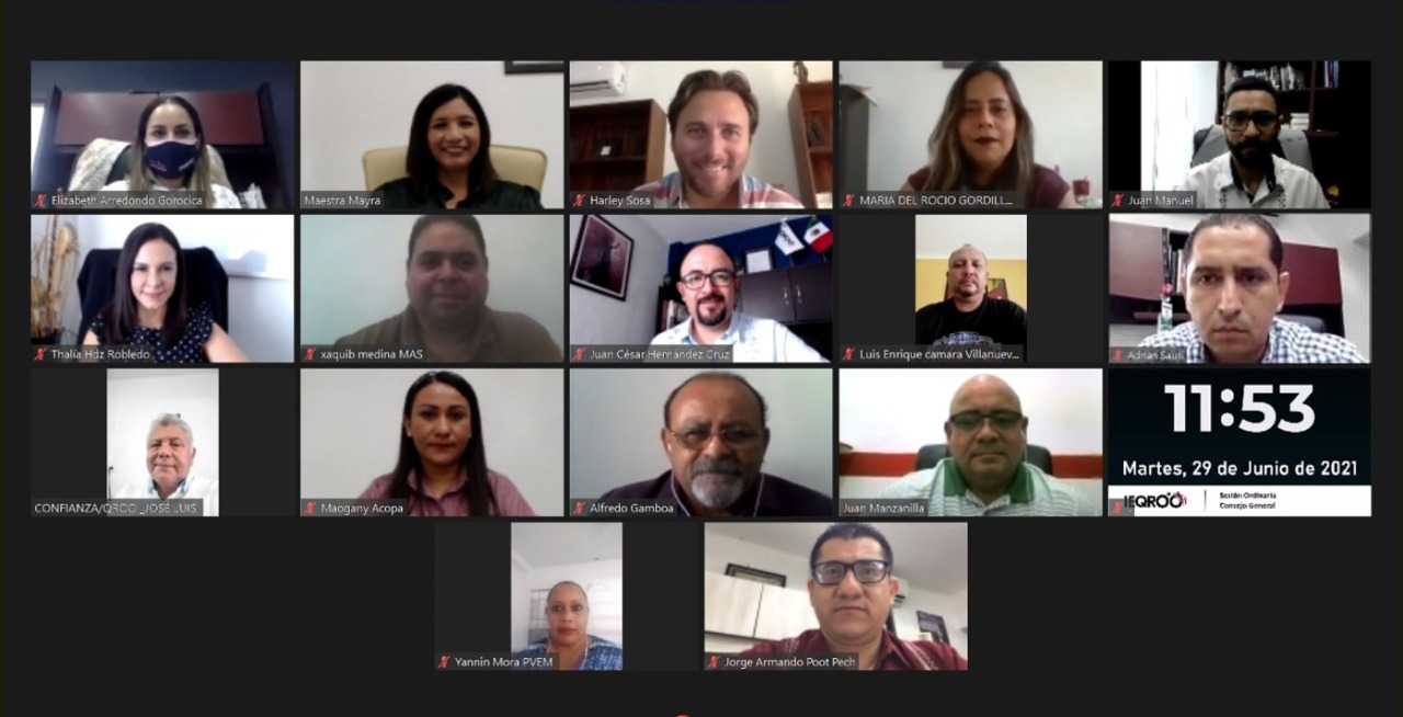 Chetumal., Q. Roo, Martes 29 de Junio de 2021, poderycrítica.- El Instituto Electoral de Quintana Roo (IEQROO), en sesión ordinaria, se llevó a cabo la presentación de los informes mensuales de la Secretaría Ejecutiva, en relación al ejercicio de la función de Oficialía Electoral; encuestas y sondeos de opinión; reportes de monitoreo de los medios de comunicación que emiten espacios de noticias en radio, televisión, medios impresos y medios digitales durante el Proceso Electoral Local 2020-2021, así como el informe del Comité de Contrataciones, Adquisiciones y Bajas del 15 de mayo al 25 de junio de 2021.