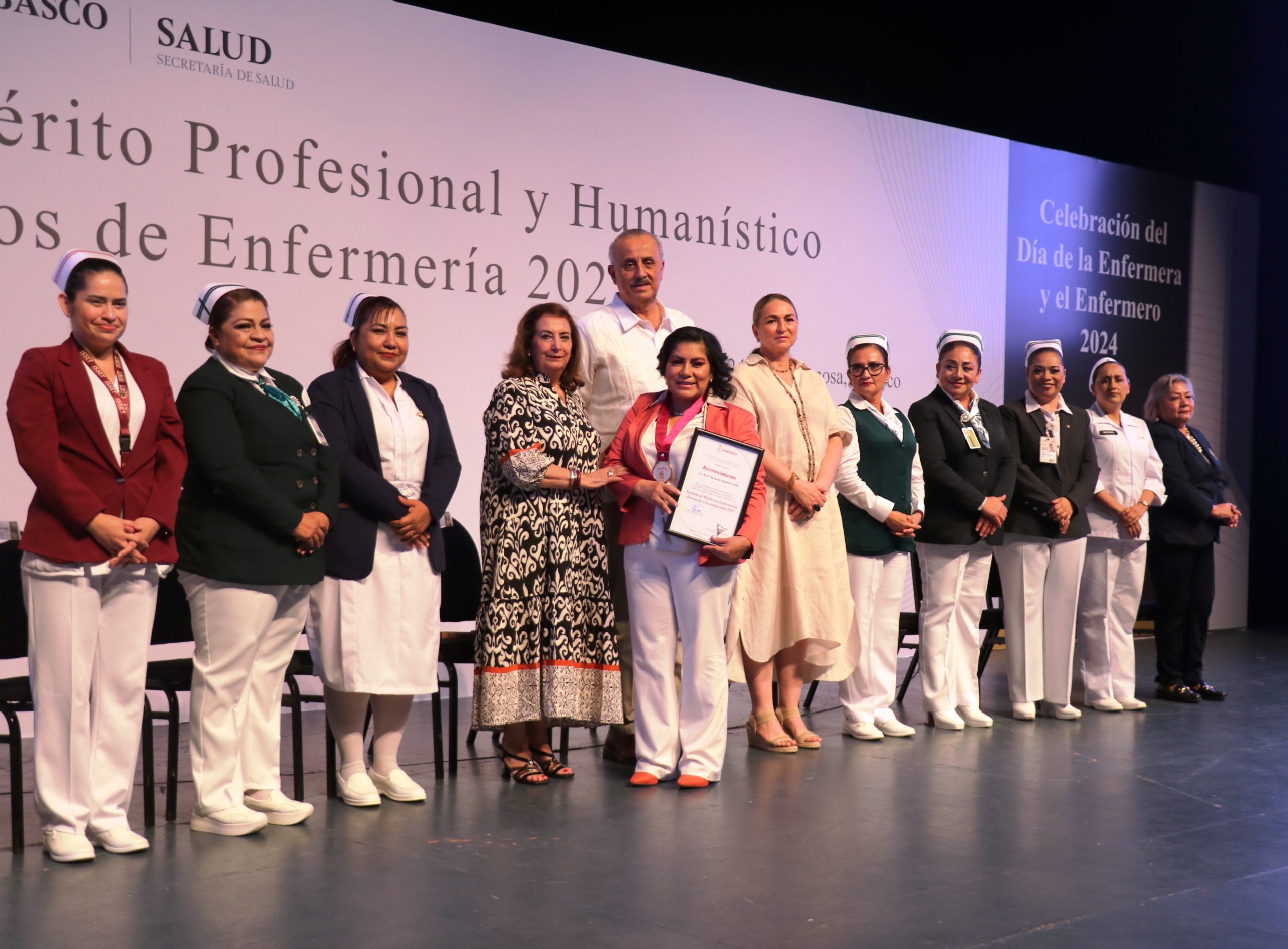 Carlos Merino destacó que las enfermeras y enfermeros galardonados sobresalieron con su actitud, experiencia, vocación y dedicación en sus actividades laborales y enfatizó que en general, el trabajo de todos los trabajadores del sector “es fundamental para garantizar el derecho a la salud de los tabasqueños”.
