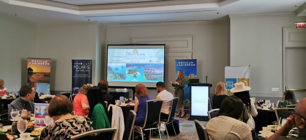 El “Roadshow del Caribe Mexicano” que se realizó del 9 al 13 de mayo consistió en una serie de actividades dirigidas a agentes de viajes como presentaciones de los destinos turísticos de Quintana Roo, citas de negocios con tour operadores, reuniones con representantes de las aerolíneas United y American Airlines, además de entrevistas con medios de comunicación y estrategias de networking.