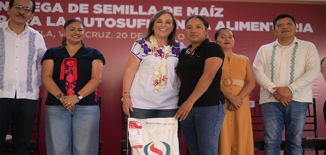 PODER Y CRÍTICA | REDACCIÓN | Desde la localidad de La Guásima, la gobernadora Rocío Nahle García encabezó la entrega de apoyos a más de 250 productoras y productores de maíz, quienes recibieron la variedad criolla mejorada Tuxpeño Hojero Chapingo para incrementar el rendimiento de sus cosechas y fortalecer la seguridad alimentaria, para reducir la importación