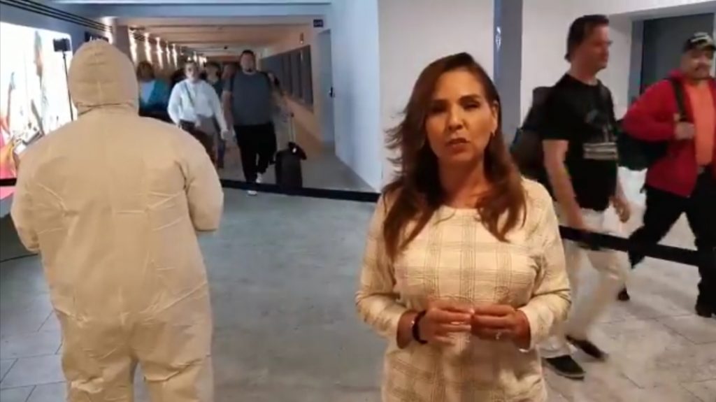 Cancún, Quintana Roo, Domingo 15 de marzo de 2020.- La presidente municipal de Benito Juárez, Mara Lezama, verificó la presencia de filtros sanitarios en el Aeropuerto Internacional de Cancún.