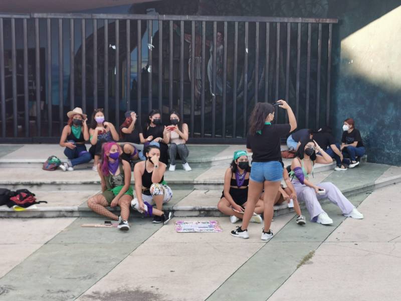 Chetumal, Q. Roo, Martes 28 de Septiembre de 2021, poderycrítica.- Para hacer escuchar su voz en la exigencia por la despenalización del aborto en Quintana Roo, colectivos de la Red Feminista Quintanarroense (RFQ) realizaron una manifestación en Chetumal frente a Palacio de gobierno y al monumento instalado en el Congreso del Estado.