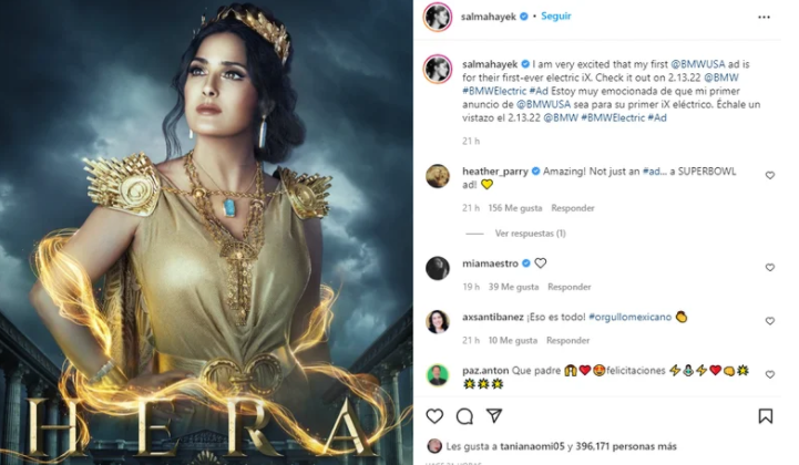 “Estoy muy emocionado de que mi primer anuncio de @BMWUSA sea para su primer iX eléctrico. Échale un vistazo el 2.13.22 @BMW #BMWElectric Estoy muy emocionada de que mi primer anuncio de @BMWUSA sea para su primer iX eléctrico”, escribió la afamada mexicana.