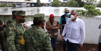El mandatario afirmó que el compromiso del presidente Andrés Manuel López Obrador, que hoy arriba a Tabasco para atender la contingencia y reforzar las medidas de prevención y auxilio implementadas por autoridades de los tres niveles de gobierno, es garantizar la integridad de la población.