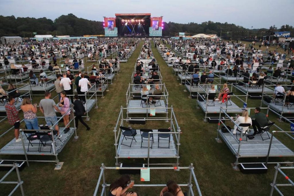 Inglaterra, Miércoles 12 de Agosto de 2020, poderycrítica.- En esta carrera por quien logra inventar la mejor manera para que los eventos en vivo puedan regresar casi como los conocemos, surgió en Inglaterra el primer concierto con plataformas y rejillas, como corralitos, que separaron a los asistentes como protocolo de salubridad.