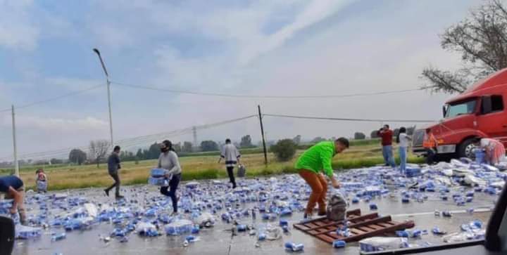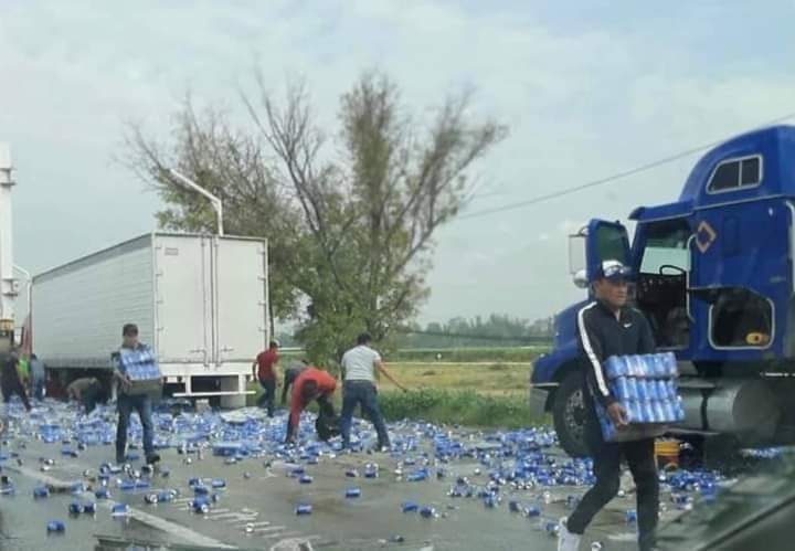 Tras un hecho, la gente se detuvo para llevarse las cervezas.