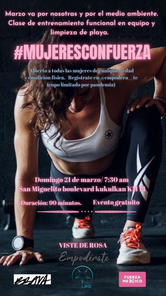 Al otro día el domingo 21 de marzo, la comunidad deportiva tendrá que levantarse también muy temprano, en esta ocasión será a las 7:30 de la mañana para participar en la clase de entrenamiento funcional en equipo y limpieza de la Playa San Miguelito que se ubica en el kilómetro 14 de la Zona Hotelera de Cancún.