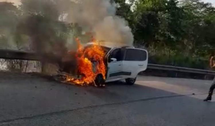 PODER Y CRÍTICA | REDACCIÓN | La mañana de este sábado, un vehículo tipo sedán se calcinó en la localidad de El Cedro, Nacajuca. Testigos informaron que el incidente ocurrió cerca del balneario Los Delfines, cuando el automóvil comenzó a arder presuntamente debido a un corto circuito.