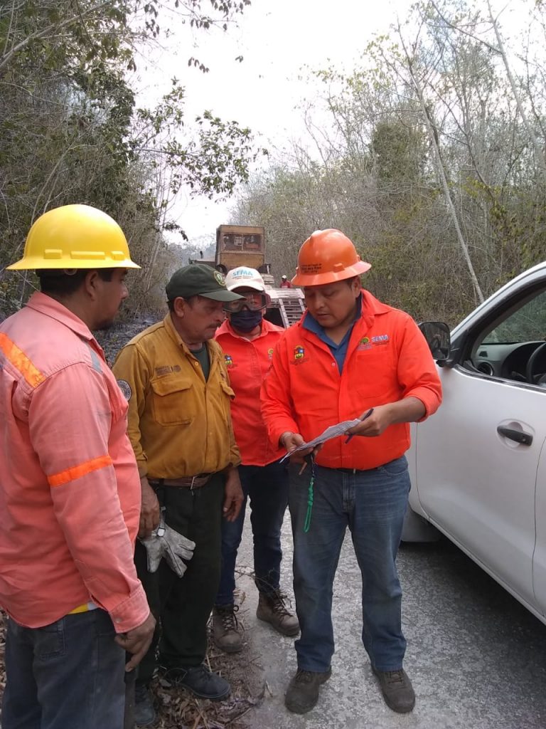 “La ruina” en la zona arqueológica de Ichkabal es atendido por 128 elementos de CONAFOR Quintana Roo, de Protección Civil Estatal, de la Secretaría de Marina, de la CONAFOR Chiapas, CONAFOR Durango, del Centro Regional de Manejo del Fuego Sureste, de la Secretaría de Ecología y Medio Ambiente, Brigadas Rurales, de la Guardia Nacional y personal voluntario, técnicos de los estados de Hidalgo y de Guanajuato.
