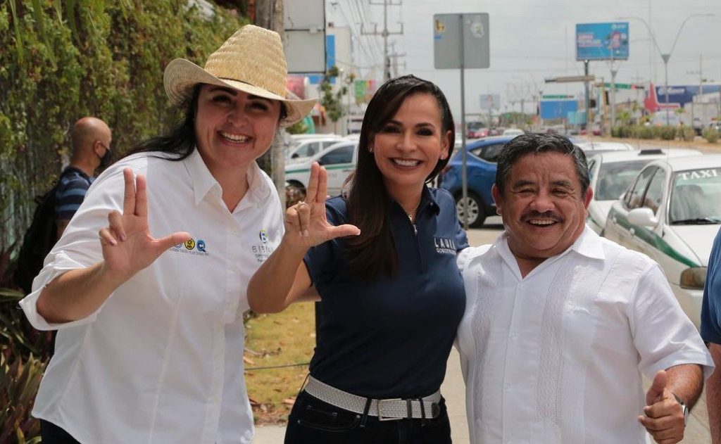 Laura Fernández estuvo acompañada por Bibian Castillo, candidata a diputada en el Distrito VI de la coalición integrada por el PAN, PRD y Confianza y Oscar Solís, líder natural taxista y abanderado del MAS en el Distrito II, que se adhirió a su campaña.