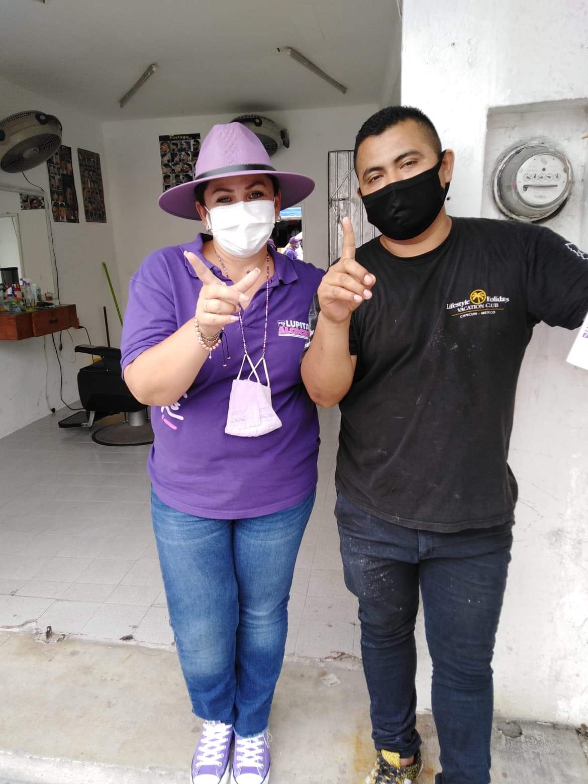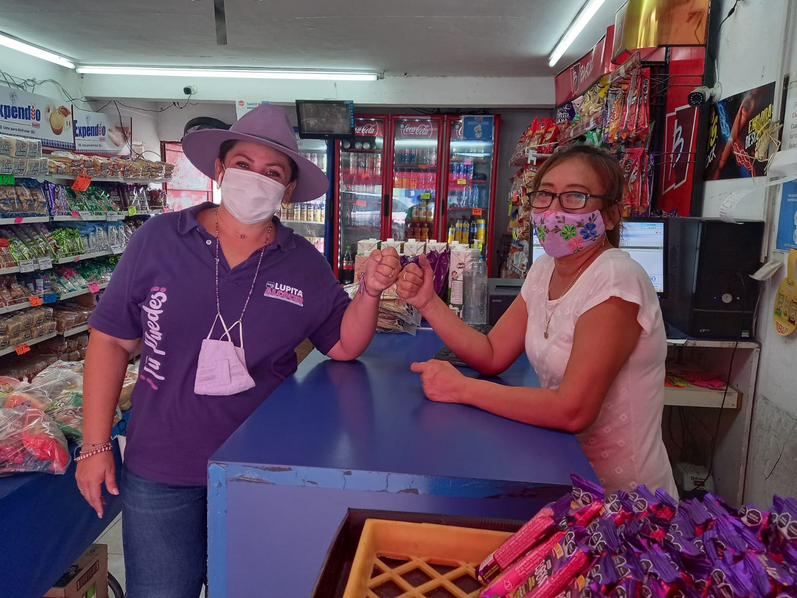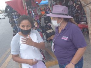 Cancún, Q. Roo, Viernes 14 de Mayo de 2021, poderycrítica.- Lupita Alcocer Espadas, candidata a la Presidencia Municipal por Benito Juárez por el Partido Encuentro Solidario (PES) visitó a los comerciantes de la Supermanzana 67 en donde se comprometió a la reducción de trámites para obtener la licencia de funcionamiento, apoyando al empresariado y a la fuente de empleo.