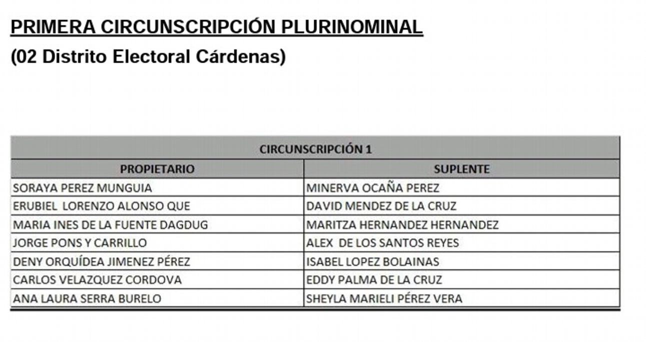 SE DA A CONOCER LA LISTA DE CANDIDATOS PLURINOMINALES DEL PRI TABASCO