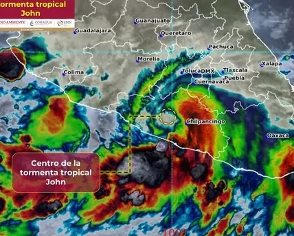 La tormenta tropical John tocó tierra en el estado de Guerrero y trae consigo condiciones meteorológicas extremas en varias regiones del país.
