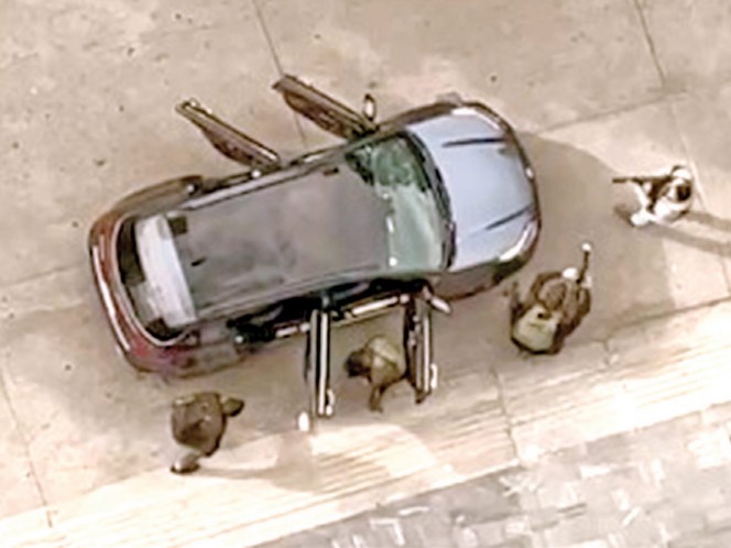 En videos grabados desde las alturas de un edificio aledaño, se muestra cuando minutos antes de los disparos, sujetos armados se desplegaban en diferentes puntos del centro comercial, o incluso en otro, el momento en el que al menos seis hombres con armas de grueso calibre se resguardan detrás de vehículos, mientras se escuchan fuertes detonaciones.