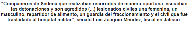 El gobernador de Jalisco, Enrique Alfaro, confirmó que el enfrentamiento ocurrido la tarde de ayer, dejó un muerto y seis heridos, dos de ellos, en calidad de detenidos.