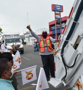 Cabe destacar que el presente proyecto de los camiones recolectores, es un arrendamiento de diez unidades, por tres años, en pagos mensuales de un millón 160 mil pesos, que incluyen los servicios de mantenimiento y cambio de llantas respectivos. Cada unidad tiene capacidad de 14 toneladas, y se suman a las cuatro unidades propias del ayuntamiento, que estarán activamente en 56 rutas de la capital del estado y alcaldías.